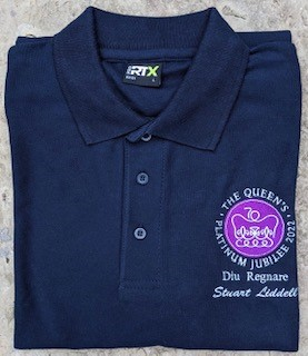 Polo shirts in Navy, Sky Blue, Purple, Black with the QPJ official logo,